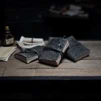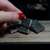A miniature 1/12 scale journal. Made with vegan leather that opens with blank pages.