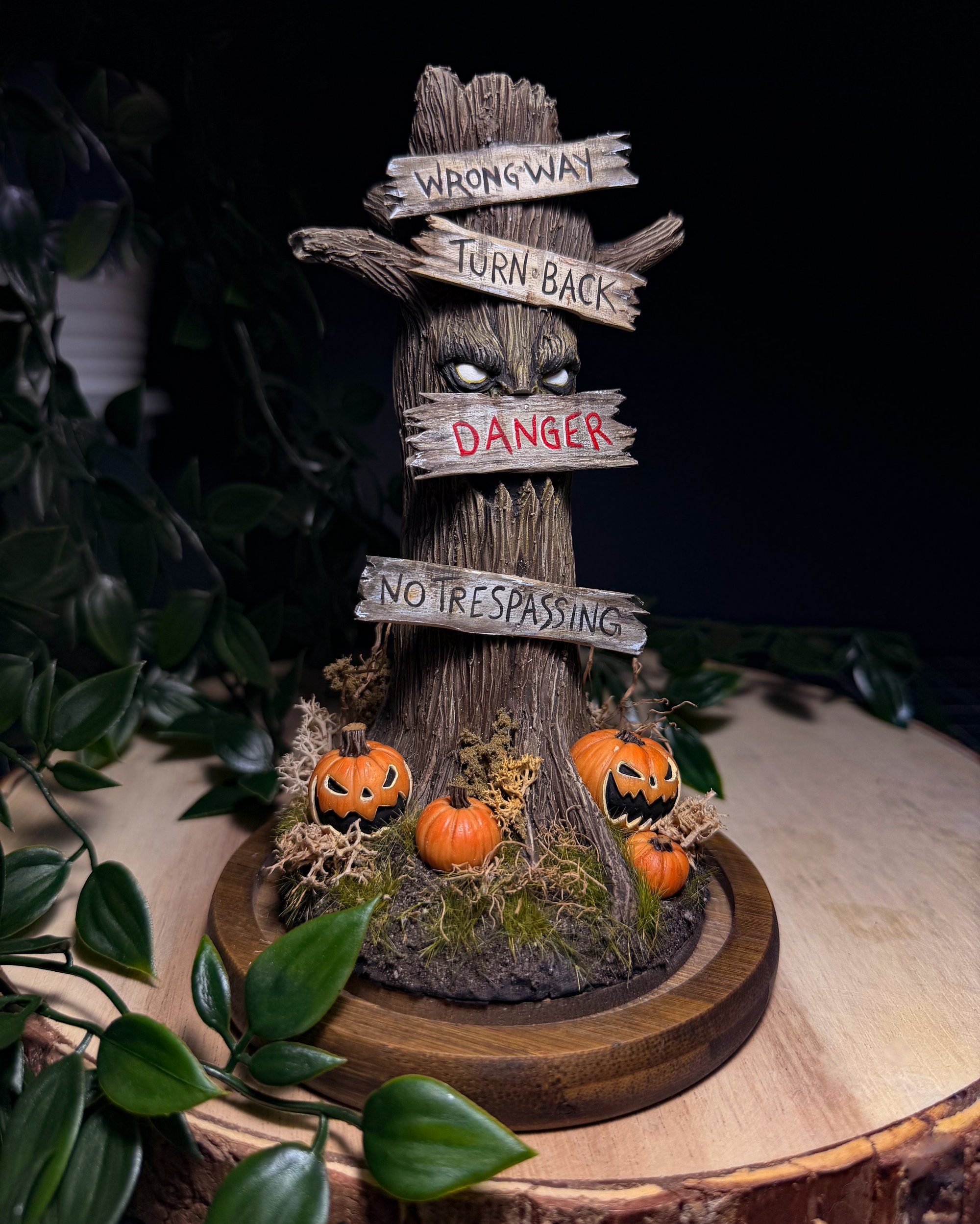 At its centre stands a watchful tree. Its eyes fixated on you.